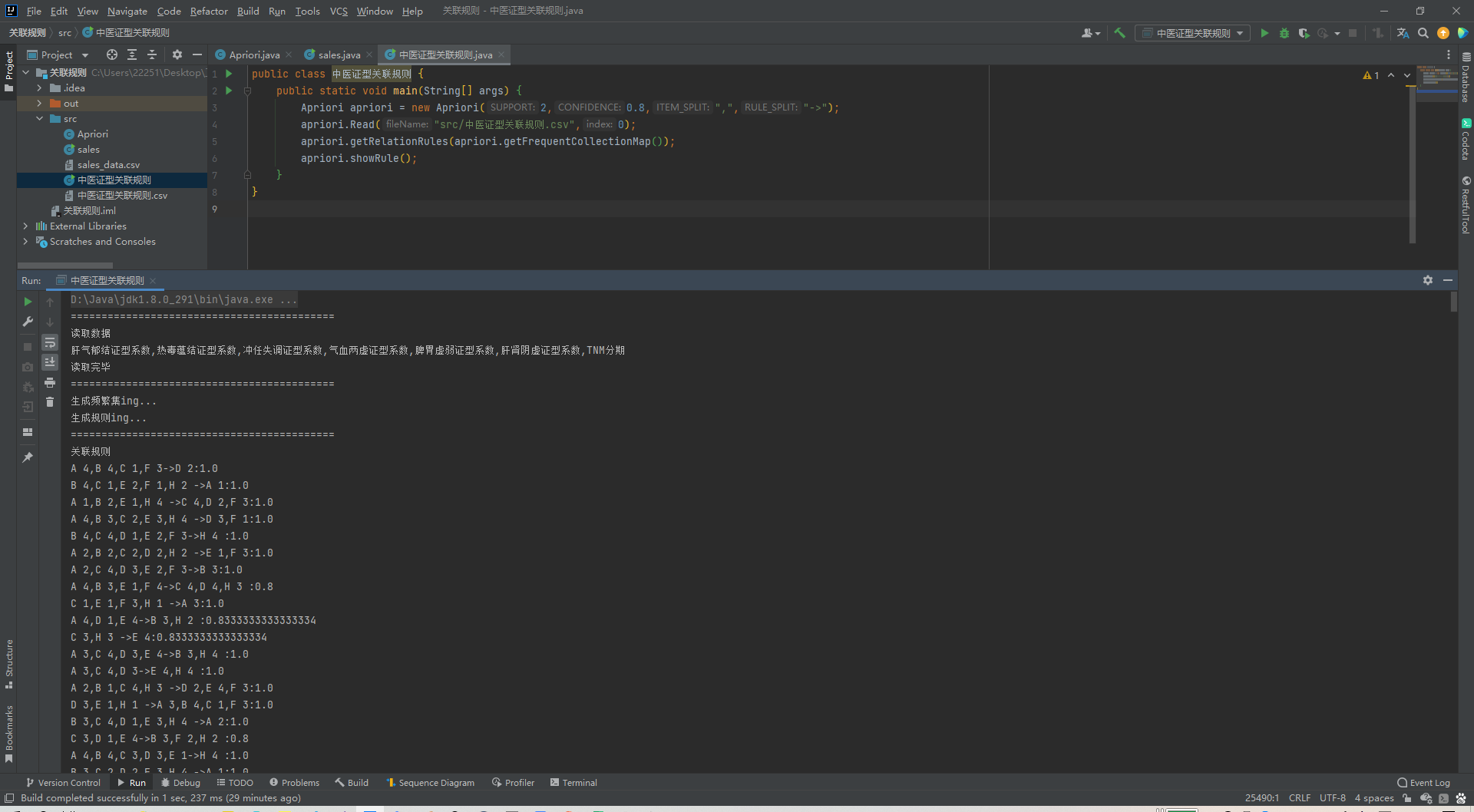 private Map<String,Double> relationRules; public Apriori() { } public Apriori(int SUPPORT, double CONFIDENCE, String ITEM_SPLIT,String RULE_SPLIT) { this.SUPPORT = SUPPORT; this.CONFIDENCE = CONFIDENCE; this.ITEM_SPLIT = ITEM_SPLIT; this.RULE_SPLIT = RULE_SPLIT; }
