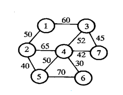 (2)对每个v属于$\overline{S_i}$ ($\overline{S_i}$ =V\Si),用$\mathop{\min}\limits_{u∈S_i}${l(v),l(u)+w(uv)}代替l(v),这里w(uv)表示顶点u和v之间边的权值。计算把达到这个最小值的一个顶点记为ui+1,令 Si+1=S i $\cup$ {ui+1}.